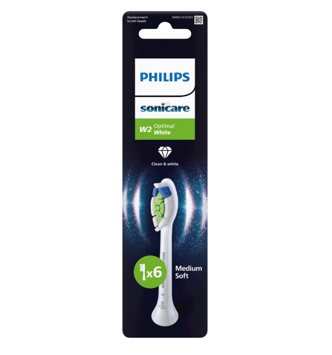 Rezerve Philips Sonicare Optimal White HX6066/87, pachet de 6 capete de periere, Standard, click-on, sincronizarea modurilor BrushSync, Alb