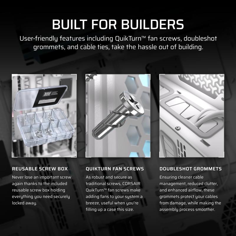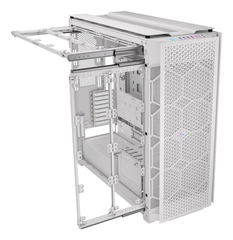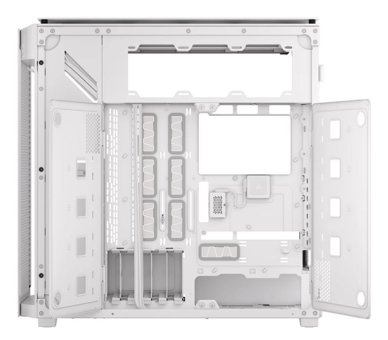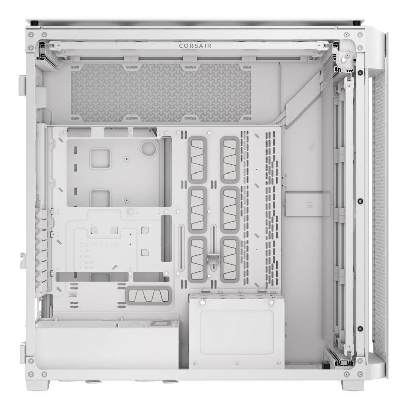 Carcasa CORSAIR 9000D AIRFLOW Super Full Tower RGB ALB, Tempered Glass, Sloturi Expansiune 8 orizontale sau 4 verticale+ verticale pentru placa de baza secundara, Drive Bays: 5×3.5″ 6×2.5″, Ventilatoare Suportate: 18 (spate: 2x120mm sau 1x140mm, fata: 8x120mm sau 3x140mm sau 2x200mm, lateral: 3x120mm, sus: 8x120mm sau 3x140mm sau 2x200mm), Format Placa De Baza Suportat: Mini-ITX, Micro-ATX, ATX, E-ATX, SSI-EEB, Lungime Maxima Placa Video: 580mm, Inaltime Maxima Cooler Procesor: 180mm