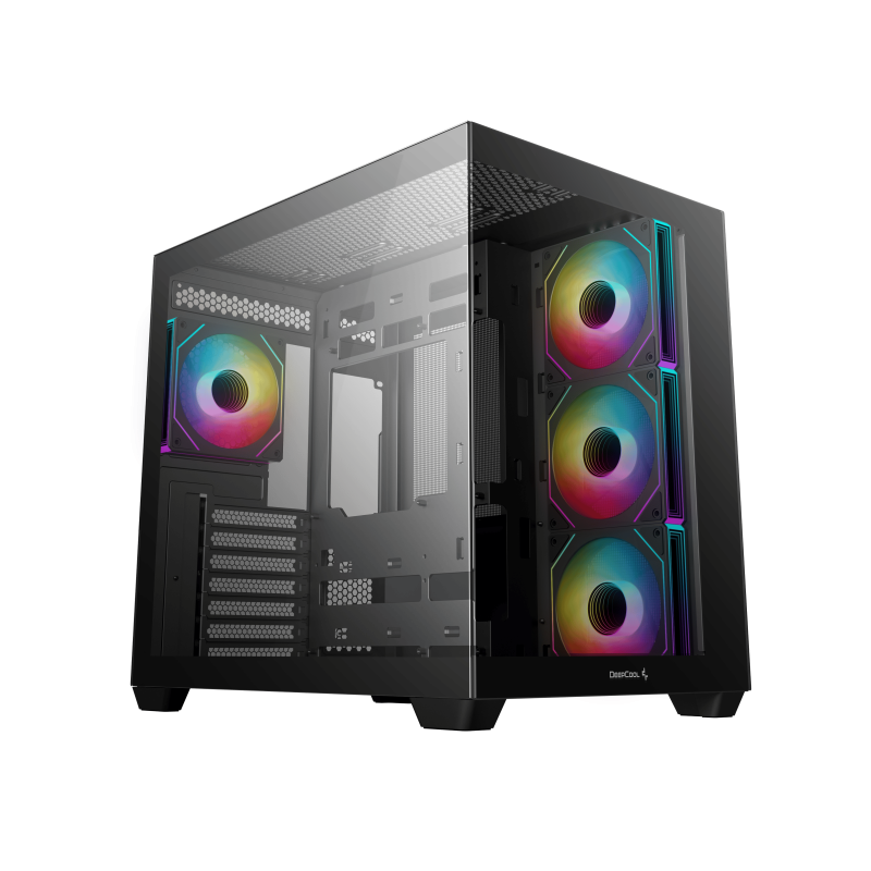 Carcasa DEEPCOOL CG550 4F Mid Tower ARGB NEGRU, Tempered Glass+ABS+SGCC, Sloturi Expansiune 7, Drive Bays: 2×3.5″ 2+1×2.5″, Ventilatoare Suportate: 10 (spate: 1x120mm, sus: 3x120mm sau 2x140mm, lateral: 3x120mm sau 2x140mm, jos: 3x120mm), Ventilatoare Incluse: 4 (spate: 1x120mm, lateral: 3x120mm), Format Placa De Baza Suportat: ITX, Micro- ATX, ATX, Lungime Maxima Placa Video: 410mm, Inaltime Maxima Cooler Procesor: 160mm