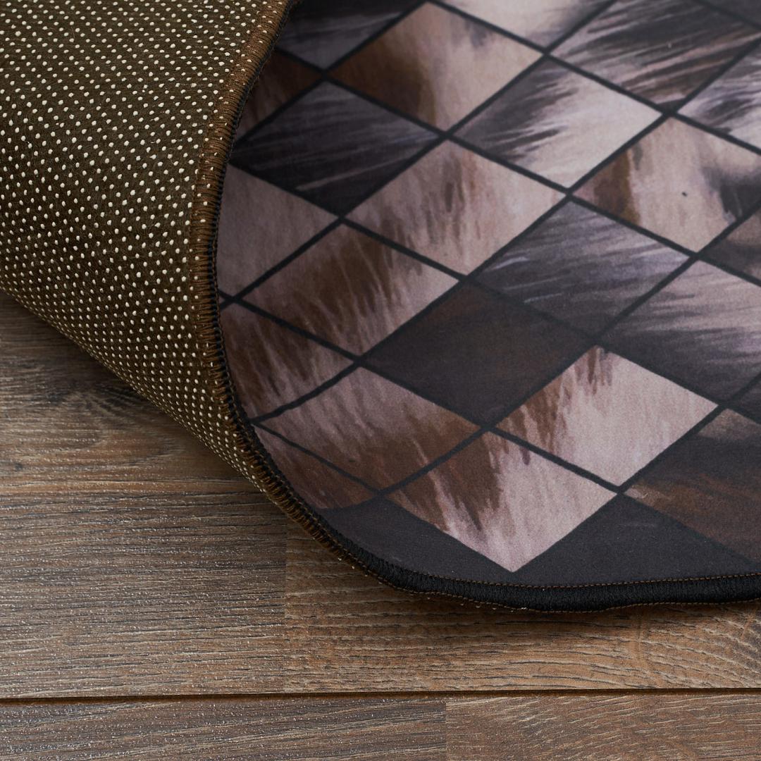 Covor cu print digital 3D, 100% poliester cu spate anti alunecare. Inaltime covor 0.8 cm , greutate fir 0.2 kg/mp. Greutate totala : 1.0 kg/mp