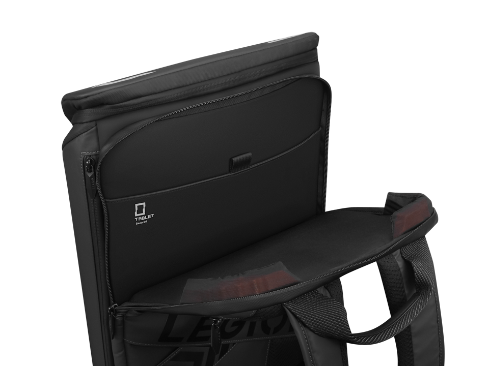 Rucsac Lenovo Legion 16 Armored GB900 pentru laptop de gaming de 16 inch; fabricat din poliester, cu invelis exterior din poliuretan; potrivit pentru dispozitive cu dimensiuni de pana la: 36 cm x 2.4 cm x 29 cm; greutate: 1.3kg; culoare: negru