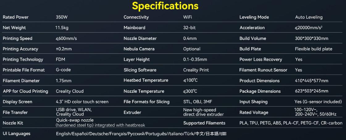 4.3″, touchscreen, viteza printare max 600mm/s,