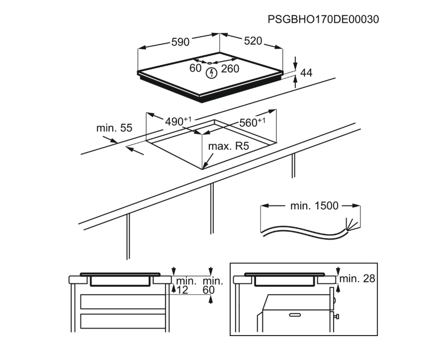 Plita incorporabila Electrolux EIS62443, Inductie, 4 zone gatit, Touch control, Conectivitate hota, 60 cm, Negru