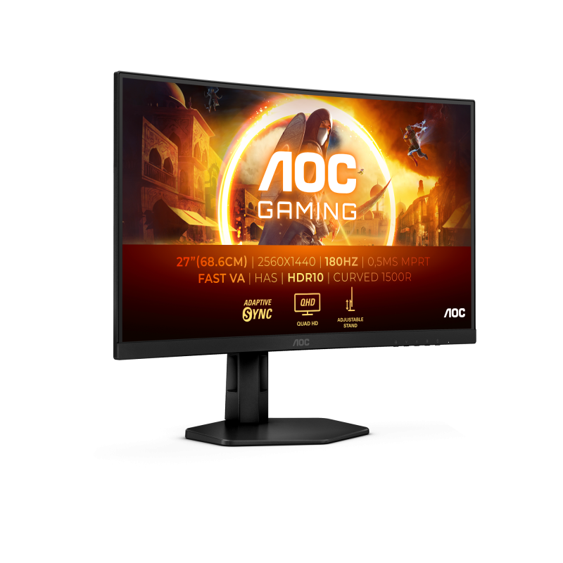 Monitor AOC 27″ CQ27G4X, Curvature: 1500R, Diagonal (inch): 27, Diagonal (cm): 69, Aspect ratio: 16:9, Panel: VA, Resolution: 2560×1440, Refresh Rate: 180Hz, Response time GtG: 1ms, Response time MPRT: 0.5ms, Brightness (max): 300 cd/m², Contrast (static) : 4000:1, Contrast (dynamic): 80M:1, Viewing angle: 178/178, Colours: 16.7M, VESA Wallmount: 100×100, Tilt: -5/23, HAS: 130mm, Swivel: -30/30, HDMI: x2, DisplayPort: x1, AUX: x1 3.5mm Audio OUT