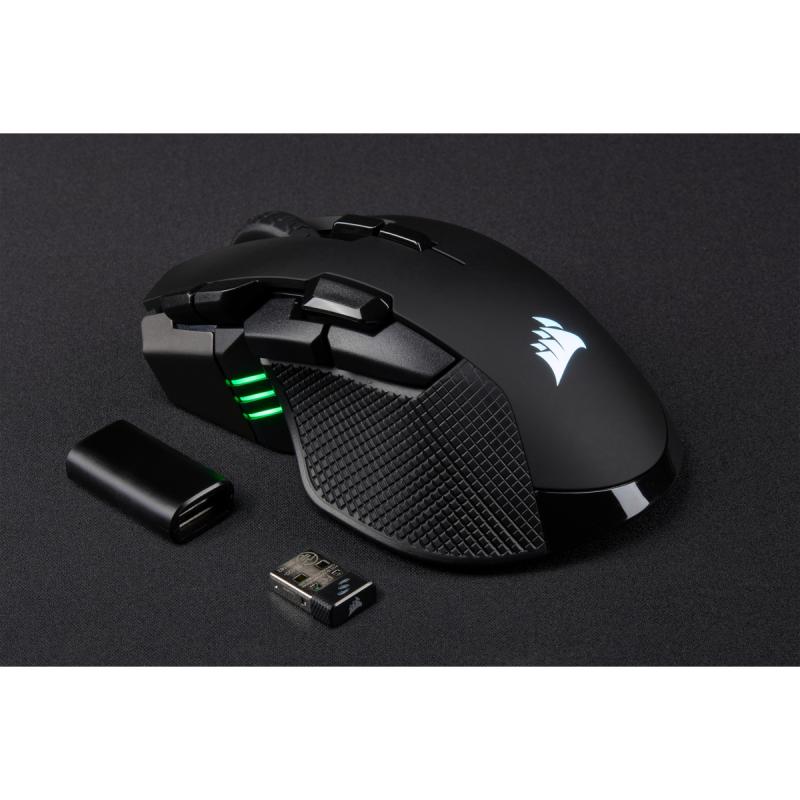 Mouse Corsair IRONCLAW RGB WIRELESS, Optical, 18000 dpi, 3 zone RGB, 10 butoane programabile, autonomie baterie de pana la 24 de ore, negru