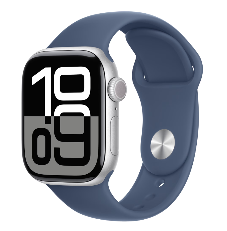 Apple Watch Series 10 GPS + Cellular 42mm Silver Aluminium Case with Denim Sport Band – M/L