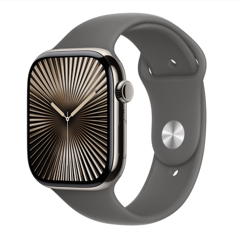 Apple Watch Series 10 GPS + Cellular 46mm Natural Titanium Case with Stone Grey Sport Band – S/M