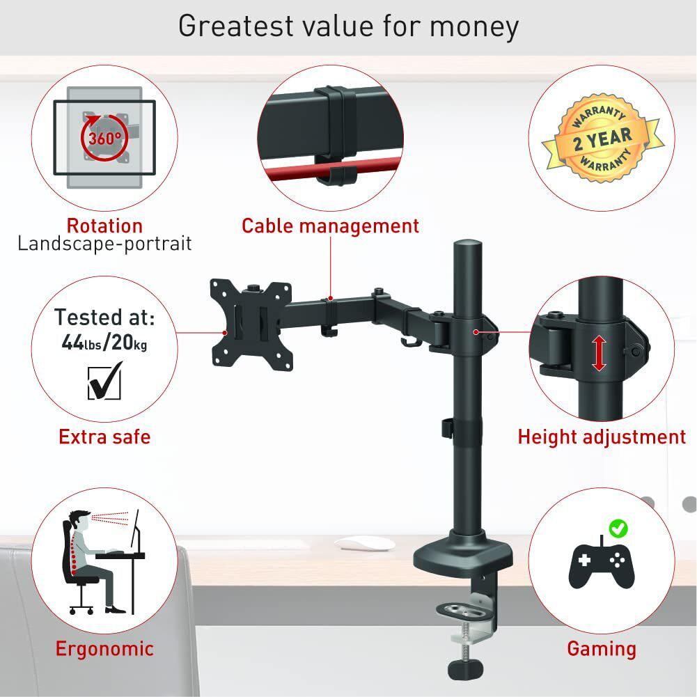 Suport monitor Barkan M121T full motion, pentru monitoare de 13″-34″, greutate maxima suportata 18 kg, VESA max. 100x100mm, negru