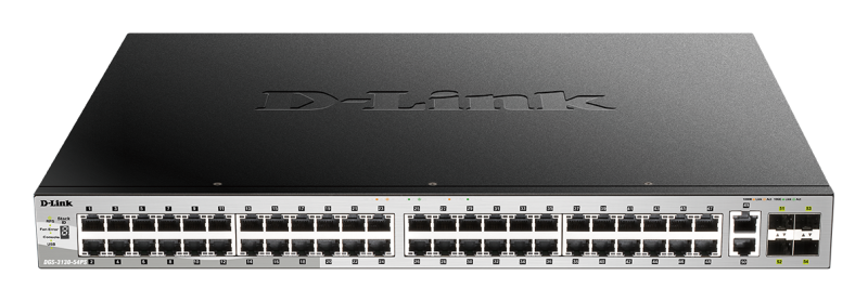 Switch D-Link DGS-3130-54PS/SI, 54-Port Gigabit SFP L3 Stackable Managed Switch, 48 x 10/100/1000BASE-T ports, 2 x 10GBASE-T and 4 x 10G SFP+ ports, Layer 3, 80 Gbps.