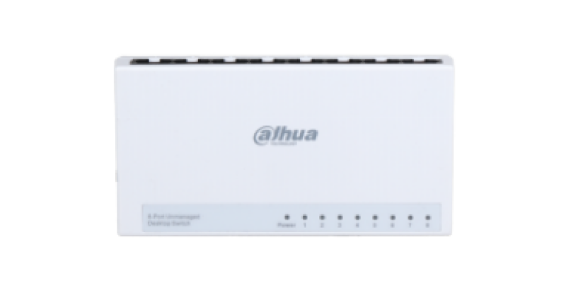 Switch Dahua 8 porturi Unmanaged, PFS3008-8ET-L, Interfata: 8 x 10/100 Mbps, Capacitate: 1.6 Gbit, Packet Forwarding Rate: 1.1904 MPPS, Greutate: 160g, Dimensiuni: 132.9 mm × 62.4 mm × 24.0 mm, Material carcasa: plastic.