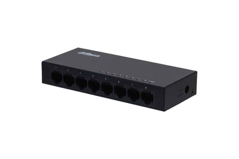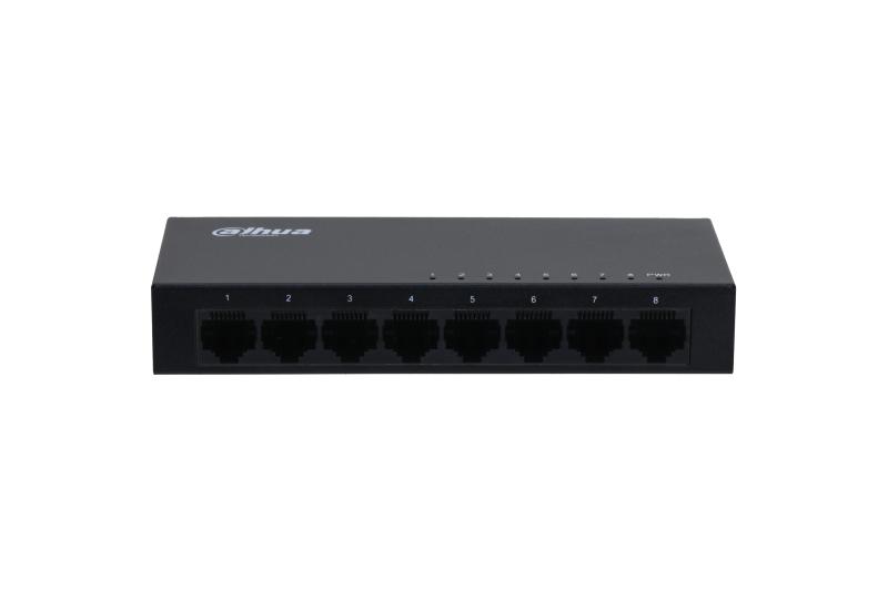 Switch Dahua PFS3008-8GT; 8 ports 10/100/1000Mbps; 186mm×106mm×33mm; Common Mode 4KV;
